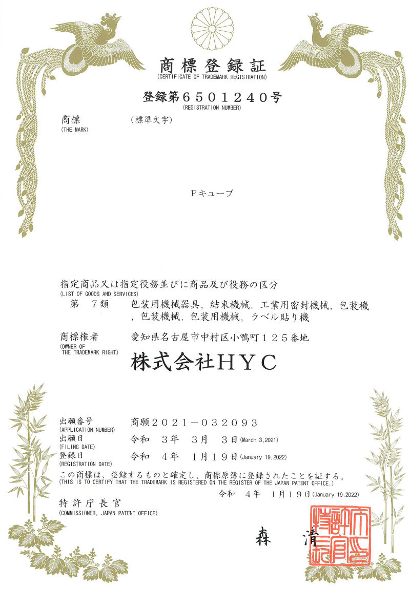 Pキューブ 商標登録(登録第6501240号)